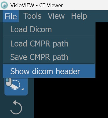 Zeigen Sie den DICOM-Header an, indem Sie die Option Datei -> DICOM-Header anzeigen im Viewer-Menü verwenden.