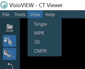 Die verfügbaren Optionen für jede Ansicht werden im unteren Panel des CT-Viewers angezeigt. Die Standardoption ist MPR und kann einfach in den Einstellungen geändert werden.