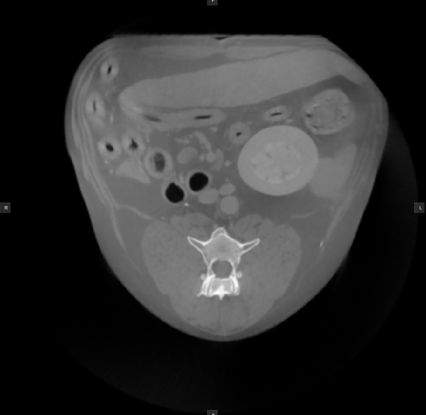 Der Standard-Windowing-Modus ist standardmäßig aktiv, wenn der CT-Viewer geöffnet wird. Die Werte für Fensterzentrum und Fensterbreite werden basierend auf den Informationen in den DICOM-Metadaten der Datei berechnet.