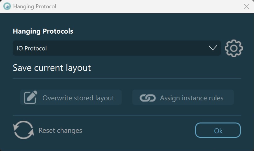 Gespeichertes Layout überschreiben: Überschreibt das Layout und die Rasterregeln für das ausgewählte Hanging Protokoll. Die Schaltfläche wird aktiviert, wenn Benutzer die Größe der Zellen im Viewer-Raster manuell ändern oder die Anzahl der Zeilen oder Spalten im Viewer-Raster über das Viewer-Menü ändern.