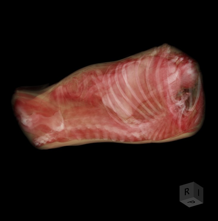 Ray - Color: Creates the 3D volume based on the HU (Hounsfield Unit) values of each voxel of the body and assigns specific colors to it.