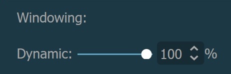 Alternatively, the percentage value of the maximum determined windowing range can be adjusted by using the Dynamic slider or the subsequent input field available in the windowing section when the dynamic mode is active.