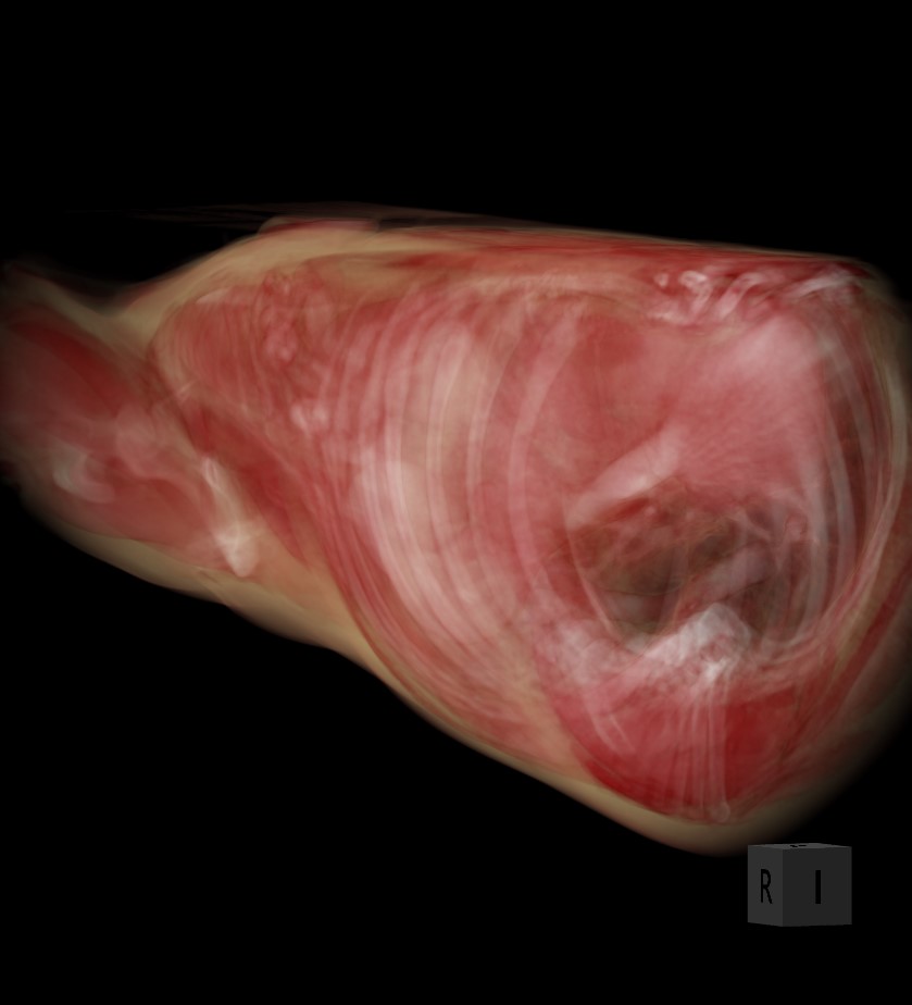 Ray - Color: Creates the 3D volume based on the HU (Hounsfield Unit) values of each voxel of the body and assigns specific colors to it.