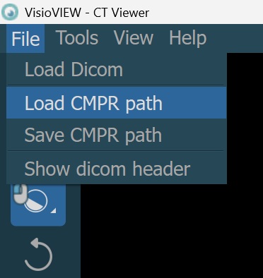 Save a drawn CMPR path by selecting the File -> Save CMPR Path option from the viewer menu. The user will be prompted to select the location and name of the file in the Windows file system.