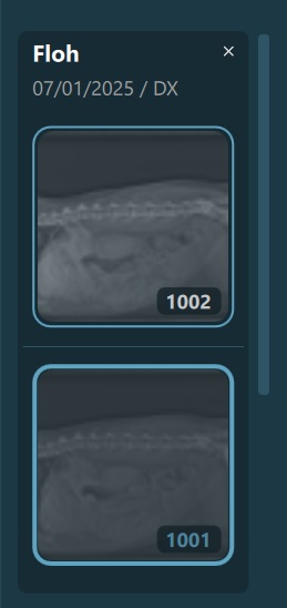 To remove entire studies from the VisioVIEW Viewer, expand the series panel and press the x icon located in the top right corner of each study group. All images related to that study will be removed from the series panel. Remove individual series from the panel by using the x icon in the top right corner of each image, visible when hovering over each image respectively.