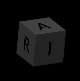 The sides of the cube are referring to the RAS coordinate system: A (Anterior), P (Posterior), L (Patient Left), R (Patient Right), S (Superior), and I (Inferior).