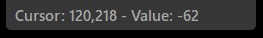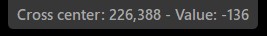 Move the mouse cursor over the images in each of the three available planes to read out the HU value in that specific cursor position. If the cursor is not within the bounds of the image, the cross center position of the intersection between the two slicers and its HU value is shown.