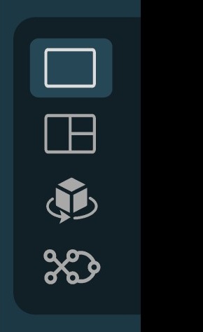 The VisioVIEW CT Viewer offers four different viewing modes. Users can freely switch between any of the available views by choosing the appropriate icon from the view switch options in the left toolbar or via the View menu from the