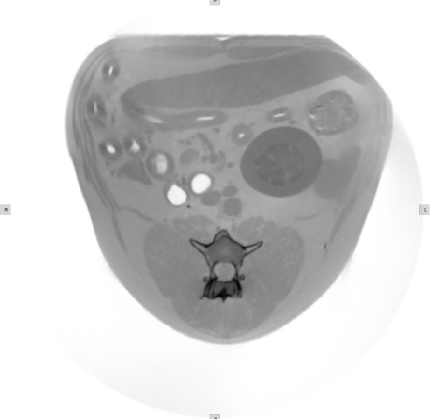 The default windowing mode is active by default when the CT Viewer is opened. The window center and window width values are calculated based on the information in the DICOM metadata of the file.