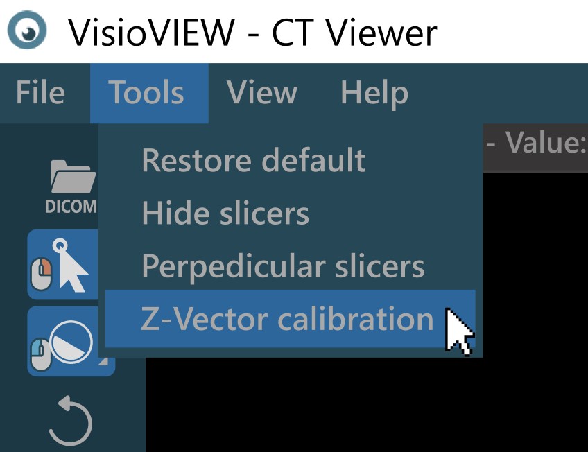 A funkció aktiválásához válaszd a Nézegető menüjében a Eszközök -> Z-vektor kalibrálás opciót.