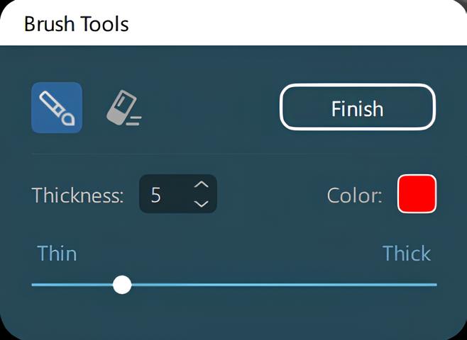 Vastagságbeviteli mező vagy csúszka segítségével állíthatja be.A rajzolási mód indításához válassza ki az ecset ikont, törléshez pedig a radír ikont. Csak az aktuálisan aktív ecsetmérés törölhető.